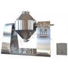 ※本机将粉末或粒状物料通过真空输送或人工加料到双锥容器中,随着容器的不断旋转,物料在容器中进行复杂的撞击运动,达到均匀的混合。