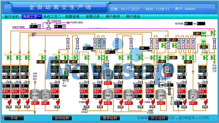 假如我们为连续离子交换/连续离交系统设计的控制系统配置如图: