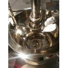 □ 真空均质乳化锅为双层不锈钢制作,通以低压蒸汽或电热水加热及冷水冷却。可采用真空吸料。锅内配有均质乳化机搅拌系统。 □ 均质乳化机采用ROSS技术,结构紧凑,实现流体高能剪切、研磨分散及乳化均质作用,高速均质乳化机通过皮带升速或变频升速方式传动,主电机采用2极电机并可配以变频或机械加速,使小直径乳化头也能获得大的线速度。框式搅拌装置由搅拌电机通过减速器带动,配置变频器可实现无级调速。搅拌框结构独特,转动的框上对称布置有横向搅拌叶,叶片形成交错绞捏作用,搅拌效率大大提高。设计中充分考虑了流体动力学特性并带有活动清壁刮板,覆盖整个内壁,使搅拌器的工作效率大大提高并保证无死角。 □ 设有照明观察视镜,可随时掌握锅内产品的均质乳化状况。 □ 本机油、水相锅均为双层304不锈钢制作,采用低压蒸汽或电热水加热方式。 □ 油、水箱锅均配置桨叶搅拌器,使锅内流体搅动,实现锅内流体均匀加热。 □ 抽真空系统:采用旋片式或水环式真空泵,水环式配以自循环水箱,实现清洁、节水的真空作业。 □ 电器总程控制柜:把本机所有动力开关、温度显示控制、电压电流检测显示、搅拌速度变频调节、均质乳化时间设定都合理集中在一起,使操作起来一目了然,既方便又安全。可采用PLC可编程控制器,提升控制可靠性及程序编程的灵活性,能实现与计算机的通信,从而能通过计算机实时联动操作。