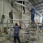 首先,钛管需要进行复试,包括压力试验、力学性能试验和拉伸试验。复试合格后,将直管焊接成单根,长度约为展开周长的三倍。将长管的一端固定在模具上,用定轮支撑,然后使用绕线机进行绕制。绕制好的钛管在焊接到支架上之前,需要捆扎固定。焊接完成后,对绕线机进行加压和渗透检测。此外,还可根据客户要求进行无损检测和拍照存档。检验合格后,进行包装入库。
