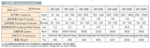 粉碎产能10~2500Kq/Hr,以60目白砂糖粉碎检验数据