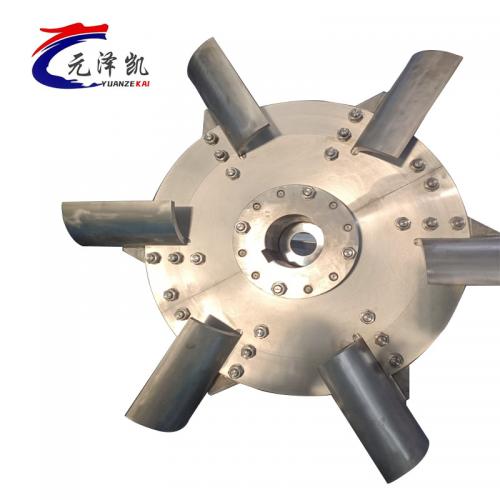 叶轮式搅拌:平叶圆盘涡轮的每个叶片后缘将形成高速剪切区域,使对液体和气体得以分散。特别适合用于液体快速混合,制备稳定的液-液体分散,固体含量小于60%的悬浮体。不互溶液体或气体的分散。可促进传热,传质和化学反应。