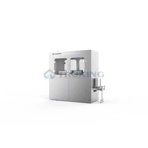 主要应用于原料铝桶的清洗,由自动进桶滚轮组、超声波清洗池、注射水清洗+压空吹扫等组成,清洗过程无需人为干预,降低了人为干预的风险。