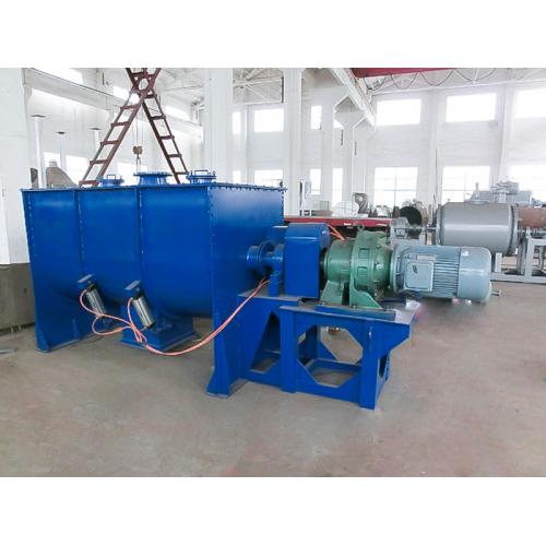 卧式螺带混合机由安装于搅拌轴上的内外径螺旋带动桶体内物料翻动,使搅拌器在桶体内大范围翻动物料。搅拌器结构上,螺旋设计成内外、左右互为反螺旋,搅拌器工作时内螺旋带动靠近轴心处物料做轴心旋转,轴向由内至两侧推动,外螺旋带动靠近筒壁物料做轴心旋转,轴向由两侧至内推动,于是造成物料在...